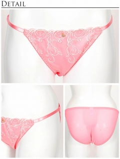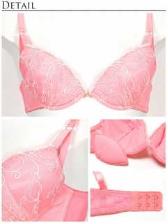まるで夜明けの世界を映したかのような、細めのタッチで描かれたオリエンタル模様の刺繍がポイントのヘルシー&センシュアルなムードブラ。胸元にはラインストーンが装飾してワンポイントにーー。