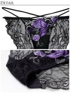 12/12新作!エレガントエンブロイダリー育乳脇高ブラジャー&バック透けTバックショーツ[大人気]
