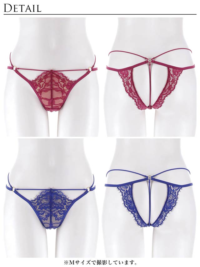 • 【予約:2/17頃より順次発送】2/13新作!【Reinest】アグレアーブルレースコードバック透け選べるショーツ[おそろいショーツ](ブルー/Tバック-M)