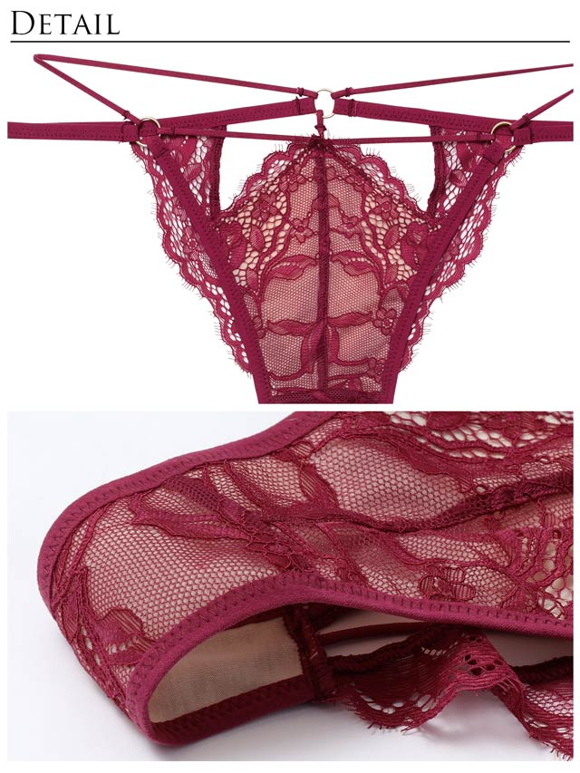 • 【予約:2/17頃より順次発送】2/13新作!【Reinest】アグレアーブルレースコードバック透け選べるショーツ[おそろいショーツ](ワイン/Tバック-M)