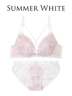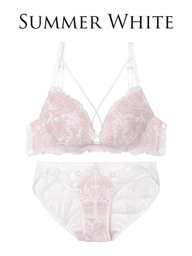 ダスティブルームエンブロイダリー育乳脇高ブラジャー&バック透けフルバックショーツ