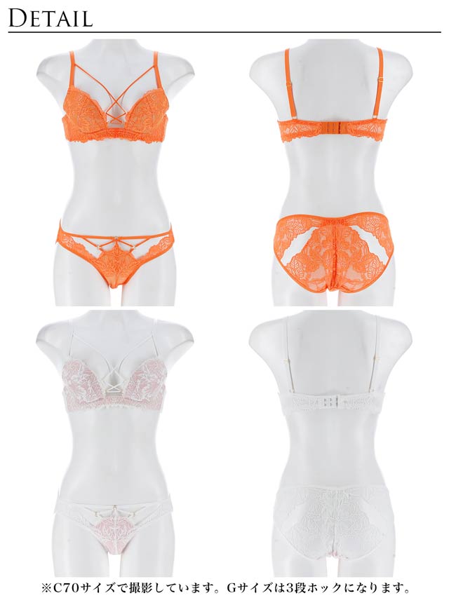 オールレースカットストリング育乳脇高ブラジャー&バック透けフルバックショーツ