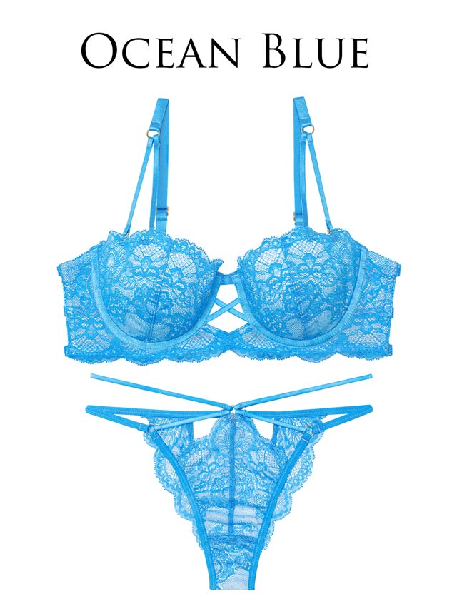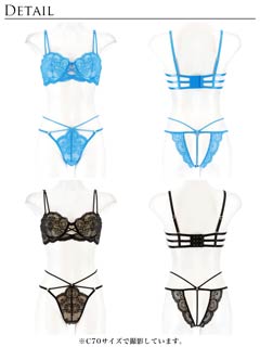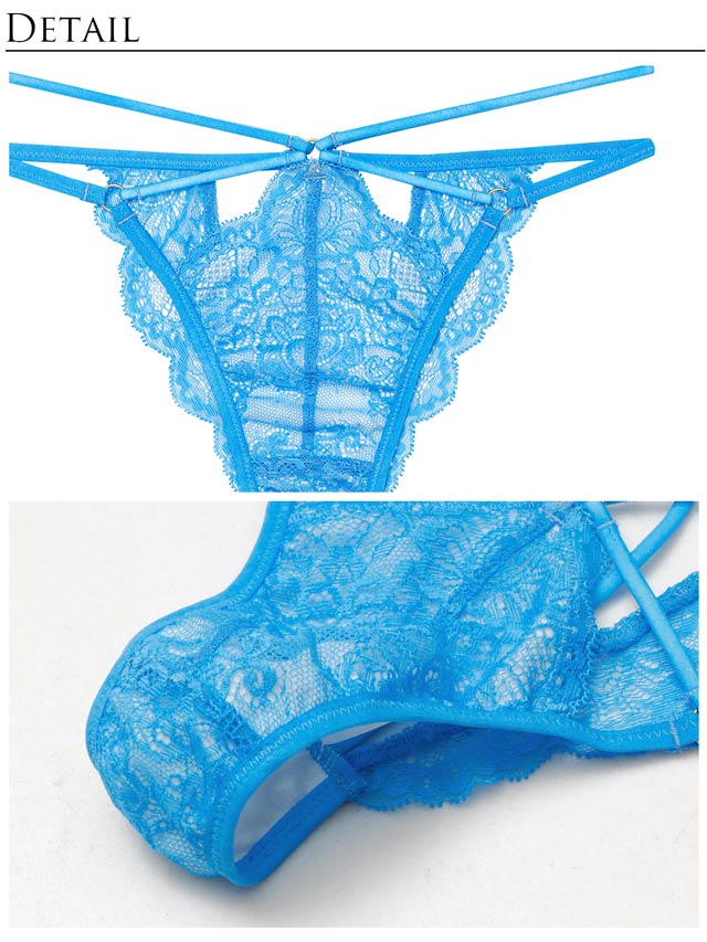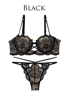 オールレースカットストリング育乳脇高ブラジャー&バック透けフルバックショーツ