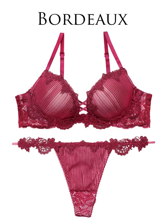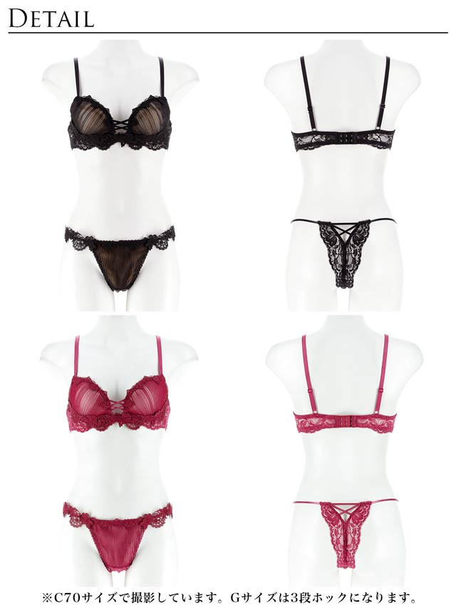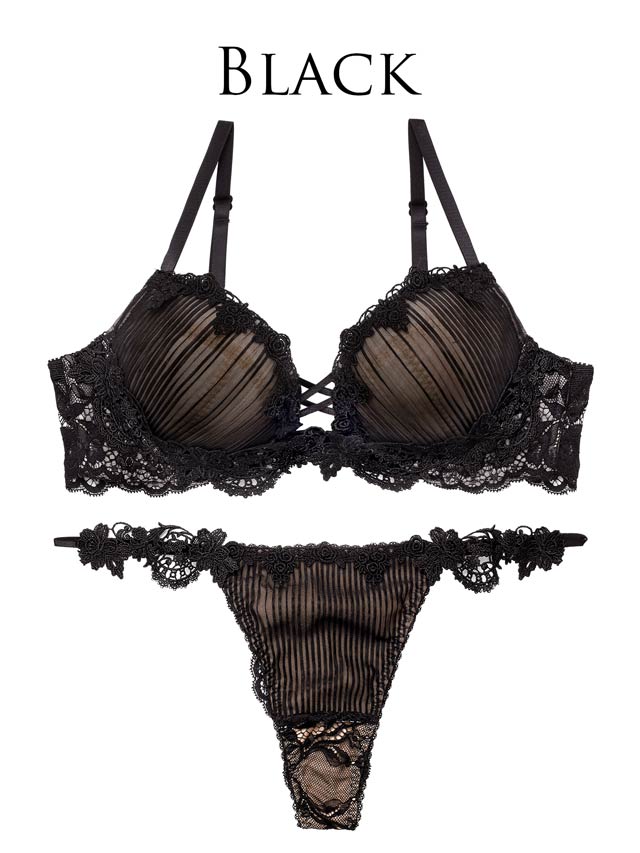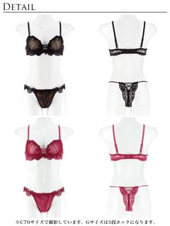 オールレースカットストリング育乳脇高ブラジャー&バック透けフルバックショーツ