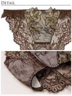 フロレゾンローズレース育乳脇高ブラジャー&サイド紐バック透けフルバックショーツ
