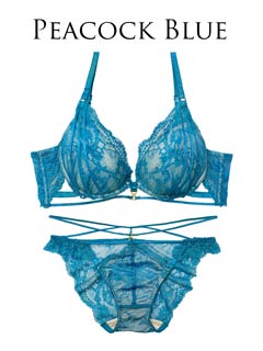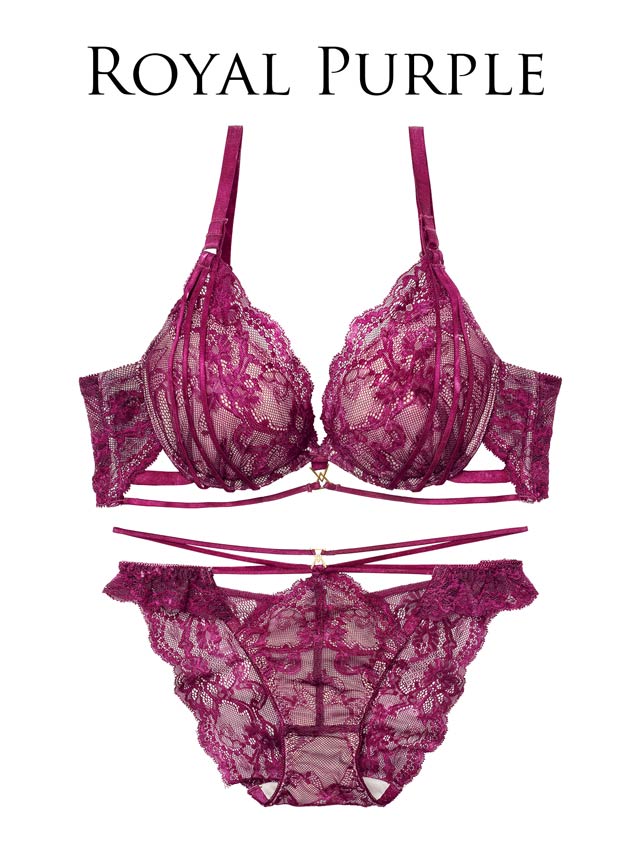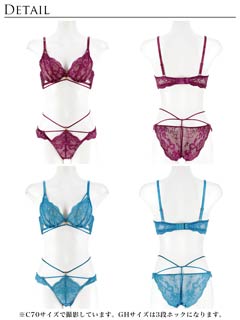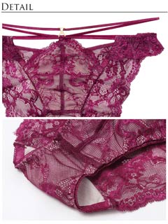 オールレースカットストリング育乳脇高ブラジャー&バック透けフルバックショーツ