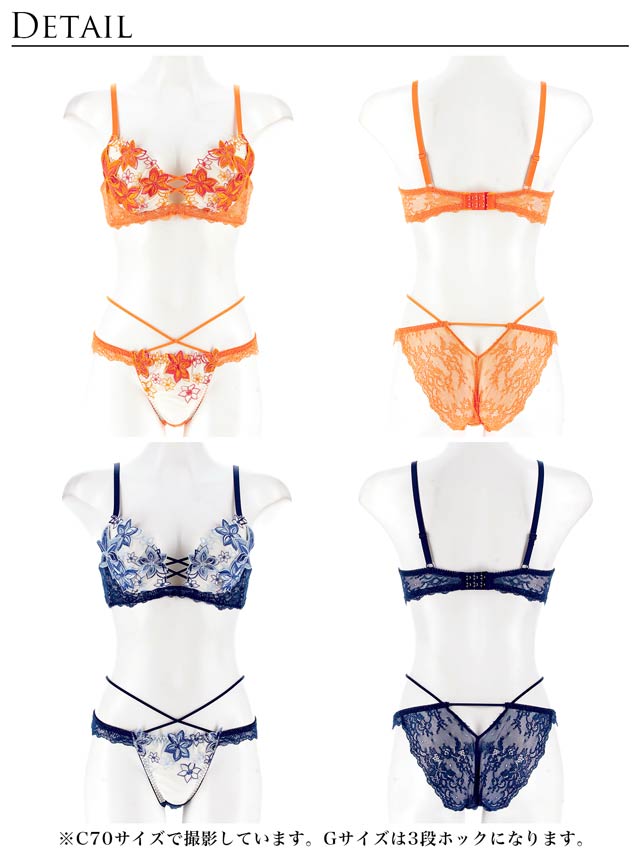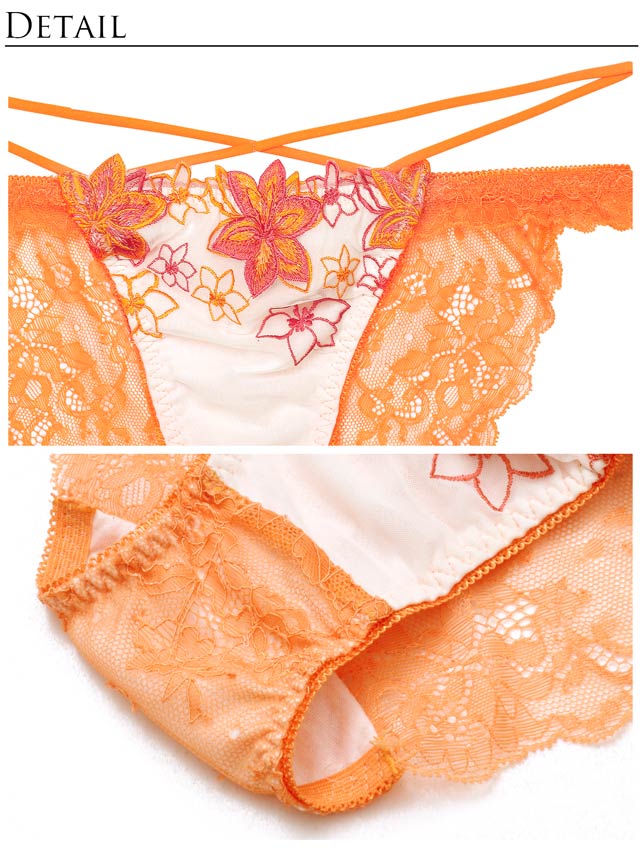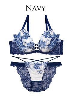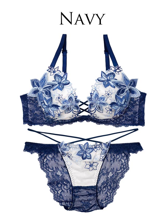 ダスティブルームエンブロイダリー育乳脇高ブラジャー&バック透けフルバックショーツ