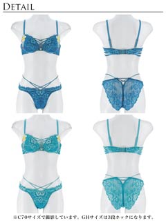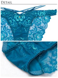 オールレースカットストリング育乳脇高ブラジャー&バック透けフルバックショーツ