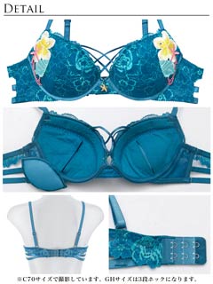 ダスティブルームエンブロイダリー育乳脇高ブラジャー&バック透けフルバックショーツ