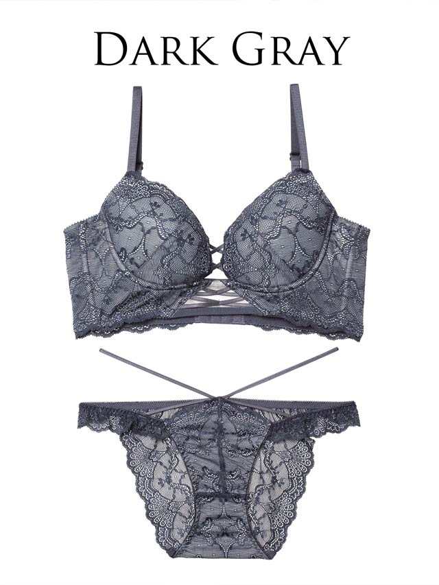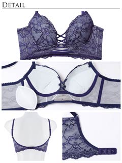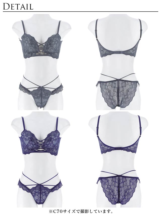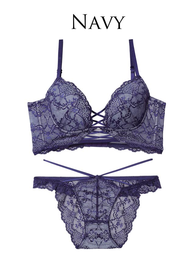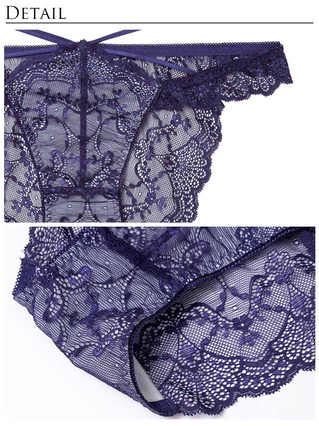 オールレースカットストリング育乳脇高ブラジャー&バック透けフルバックショーツ