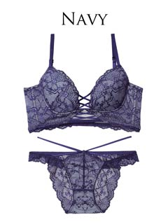 12/17新作!【Reinest】ラグジュアリーレースアップ背中魅せブラジャー&バック透けフルバックショーツ[大人気]