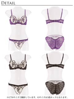オールレースカットストリング育乳脇高ブラジャー&バック透けフルバックショーツ
