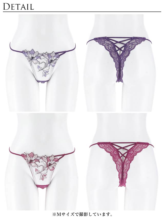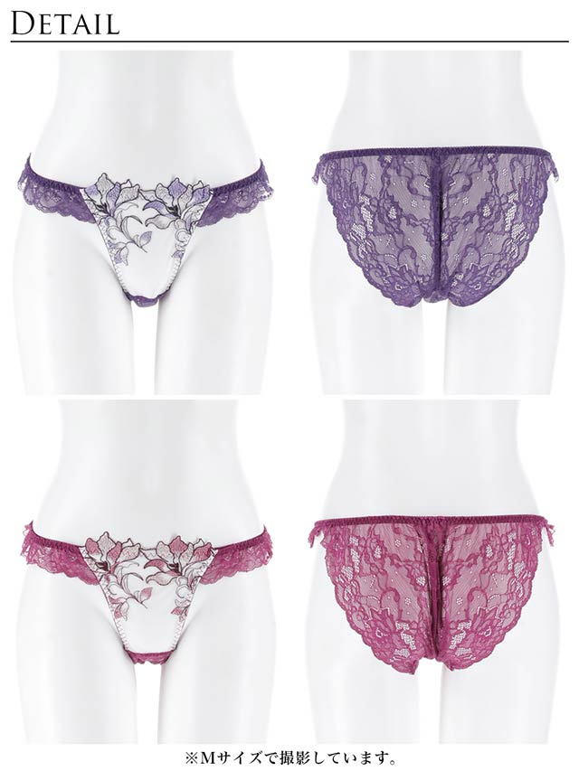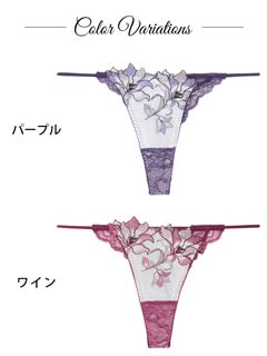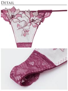 【Reinest】【GHサイズ】ルーチェリリーエンブロイダリーブラジャー&サイド紐バック透けTバックショーツ