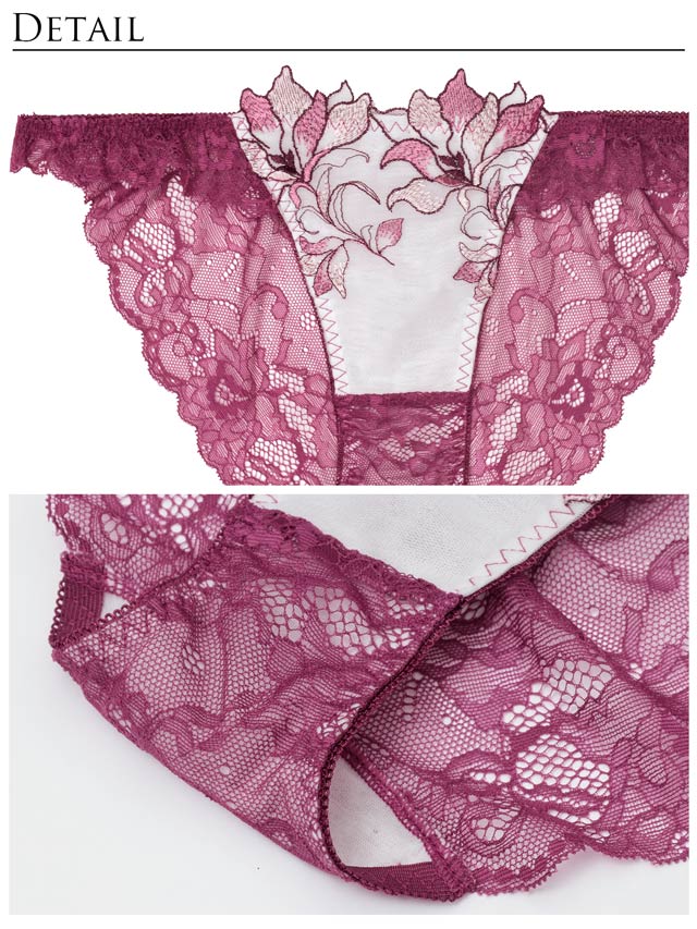 フロレゾンローズレース育乳脇高ブラジャー&サイド紐バック透けフルバックショーツ
