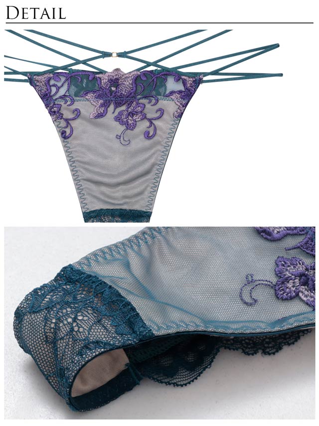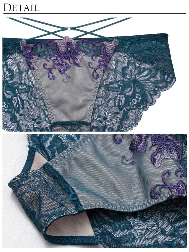 ダスティブルームエンブロイダリー育乳脇高ブラジャー&バック透けフルバックショーツ
