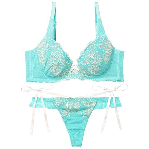 オールレースカットストリング育乳脇高ブラジャー&バック透けフルバックショーツ