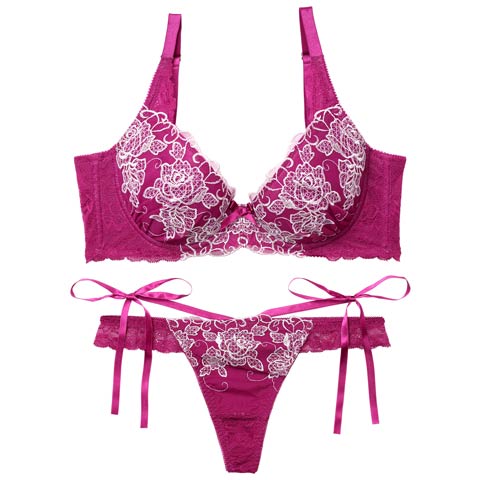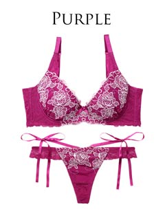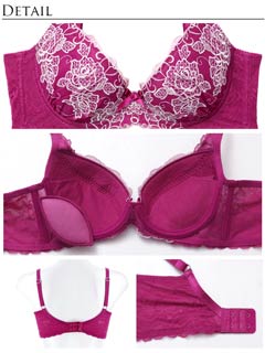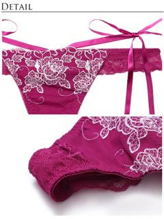 【3点セット】【GHIサイズ】オリエンタルローズエンブロイダリー育乳脇高ブラジャー&バック透けフルバック&Tバックショーツ