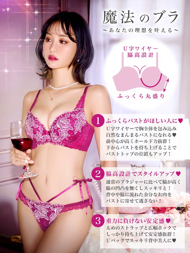 【永尾まりや着用】【Reinest】【GHサイズ】トゥインクルレディローズ育乳脇高★魔法のブラジャー&バック透けTバックショーツ[大人気][Rセール]