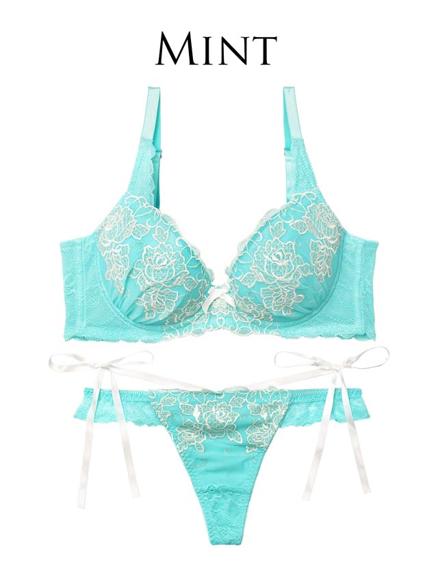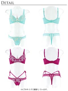 フロレゾンローズレース育乳脇高ブラジャー&サイド紐バック透けフルバックショーツ