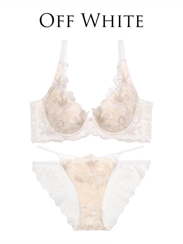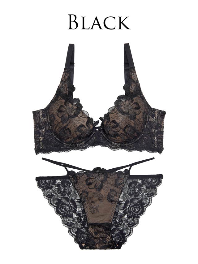 ダスティブルームエンブロイダリー育乳脇高ブラジャー&バック透けフルバックショーツ