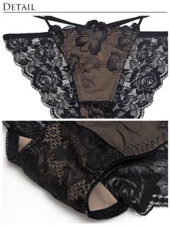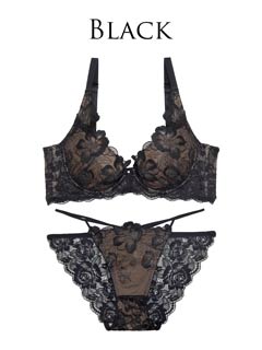 オールレースカットストリング育乳脇高ブラジャー&バック透けフルバックショーツ