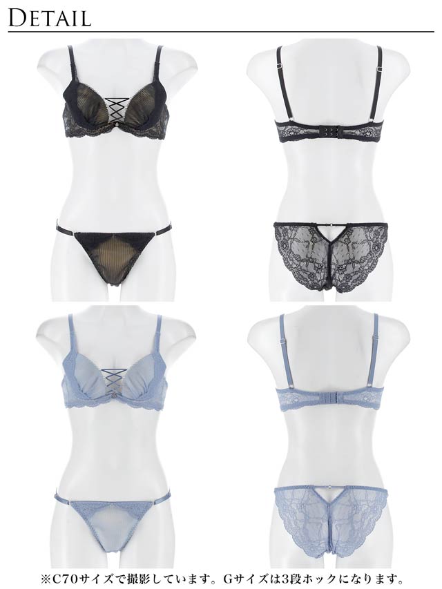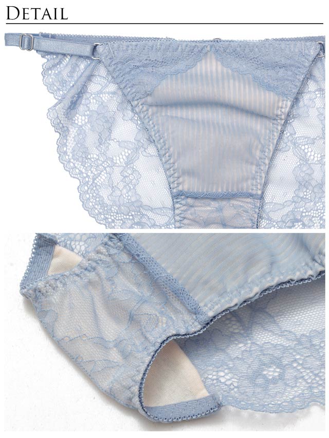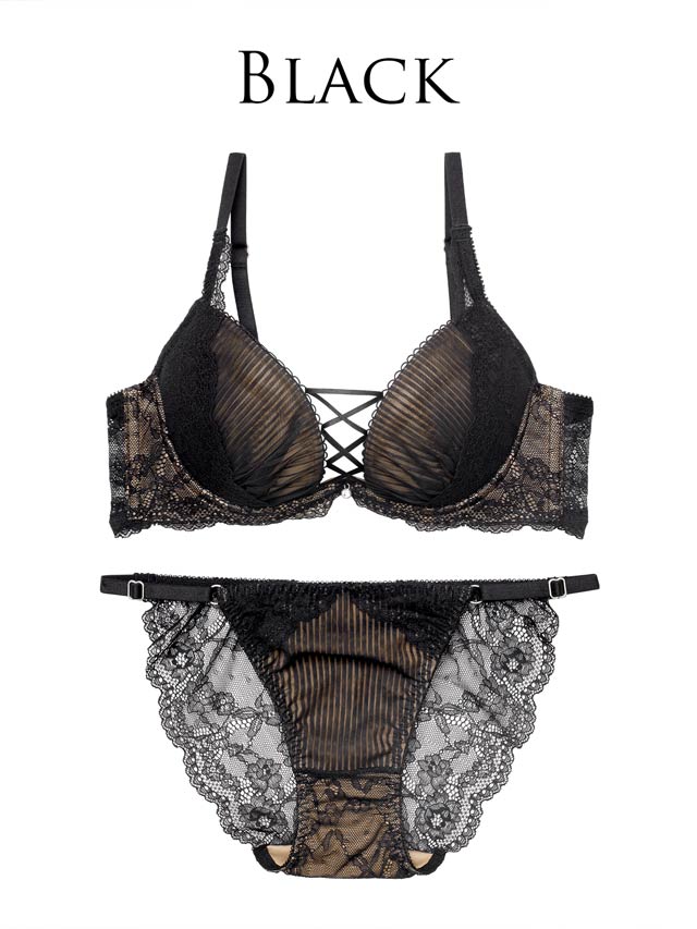 オールレースカットストリング育乳脇高ブラジャー&バック透けフルバックショーツ