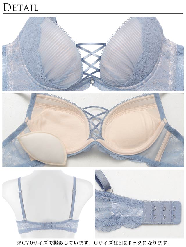 ダスティブルームエンブロイダリー育乳脇高ブラジャー&バック透けフルバックショーツ