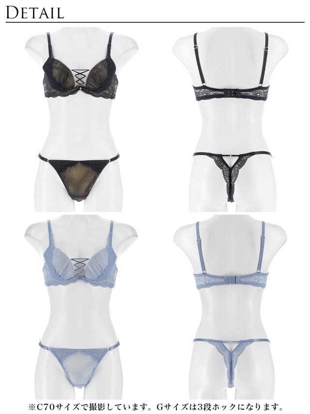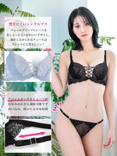 【永尾まりや着用】【Reinest】メロウプリーツレースアップブラジャー&バック透けTバックショーツ[大人気]