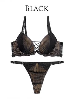 ディープサテンリボンコード育乳脇高ブラジャー&バック透けTバックショーツ[激売れ][週替][スーパーセール]