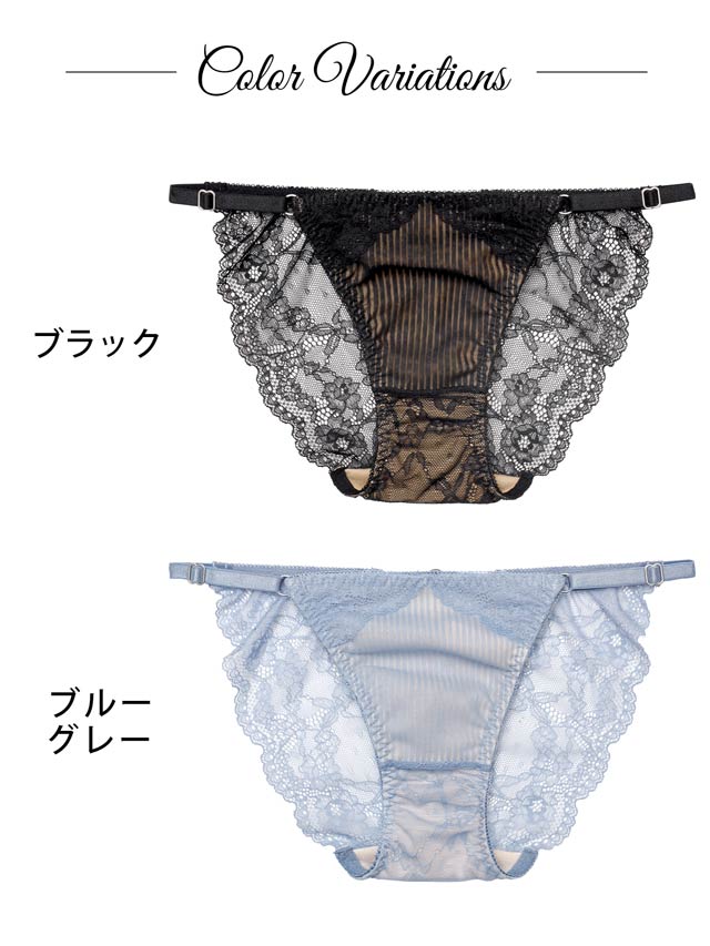 オールレースカットストリング育乳脇高ブラジャー&バック透けフルバックショーツ