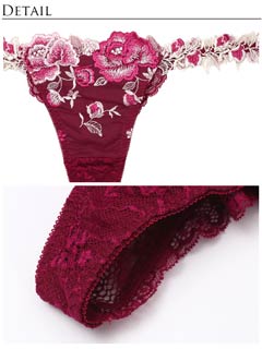 フロレゾンローズレース育乳脇高ブラジャー&サイド紐バック透けフルバックショーツ