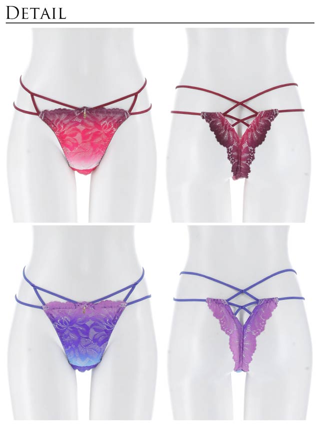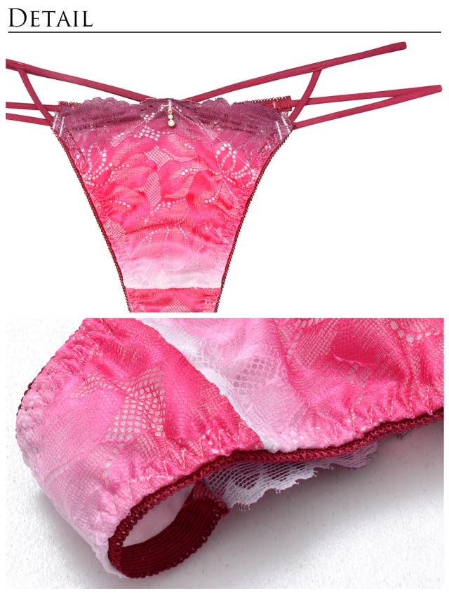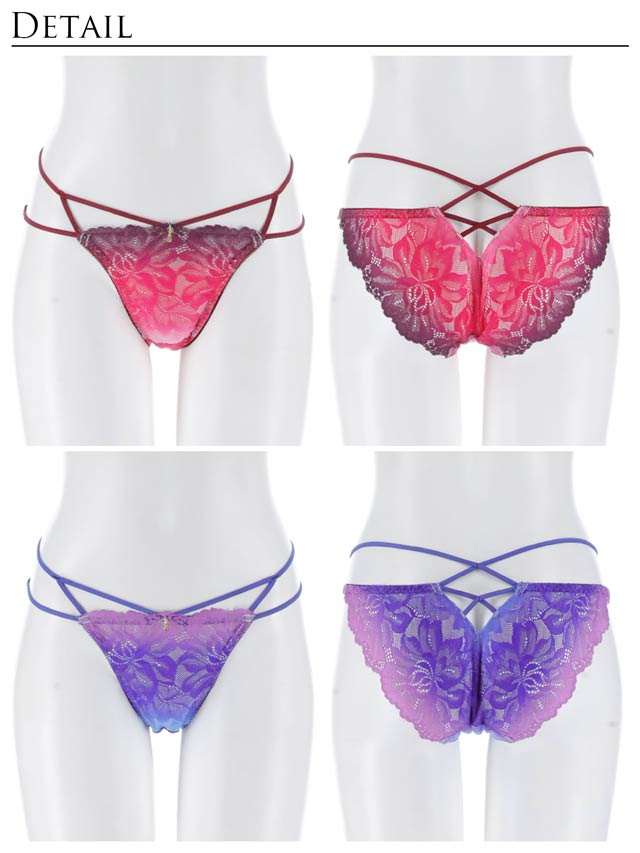 オールレースカットストリング育乳脇高ブラジャー&バック透けフルバックショーツ