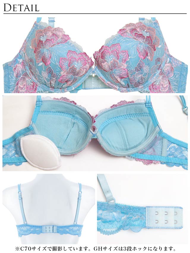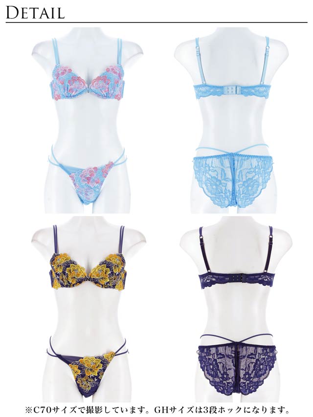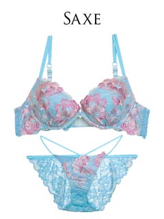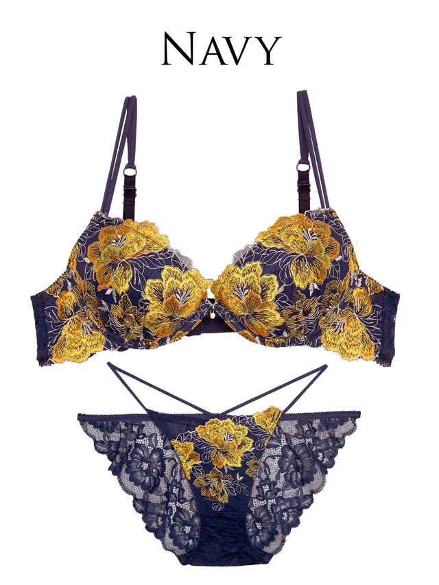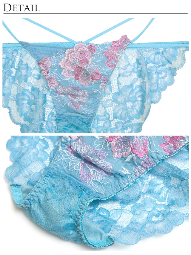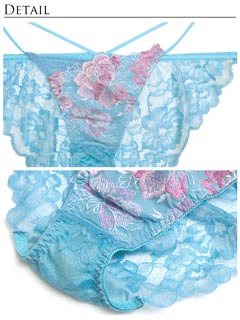 ダスティブルームエンブロイダリー育乳脇高ブラジャー&バック透けフルバックショーツ