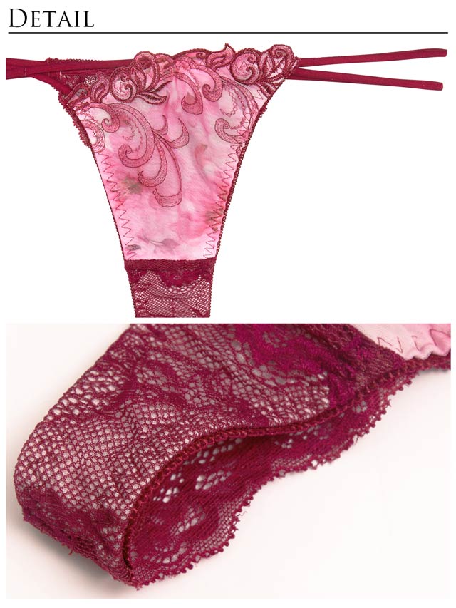 オールレースカットストリング育乳脇高ブラジャー&バック透けフルバックショーツ