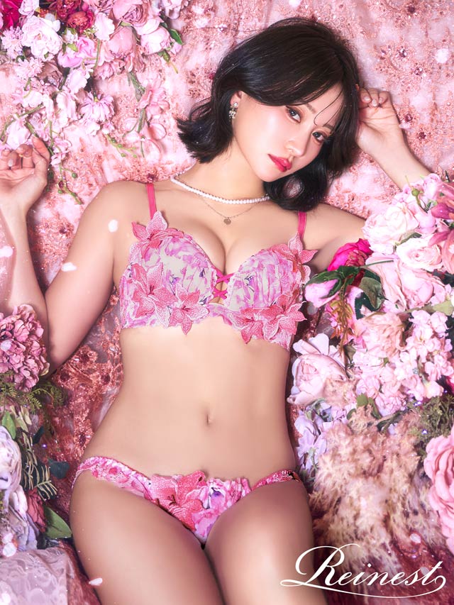4/6新作!【永尾まりや着用】【Reinest】ルミナスリリーブロッサムブラジャー&バック透けTバックショーツ[大人気]