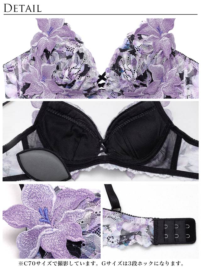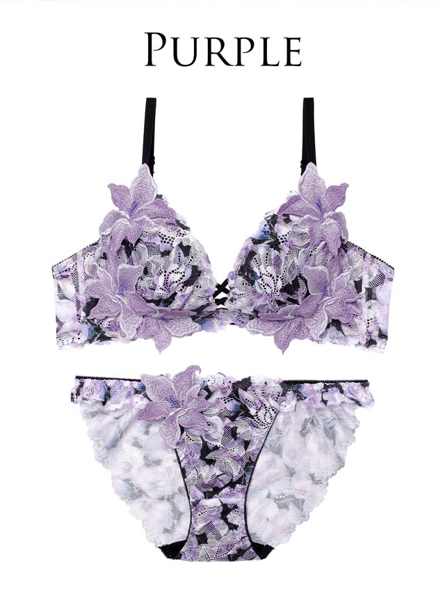 3/30新作!【三上悠亜着用】エレガントアシンメトリーブロッサムブラジャー&フルバックショーツ[激売れ]