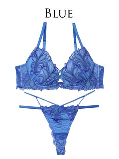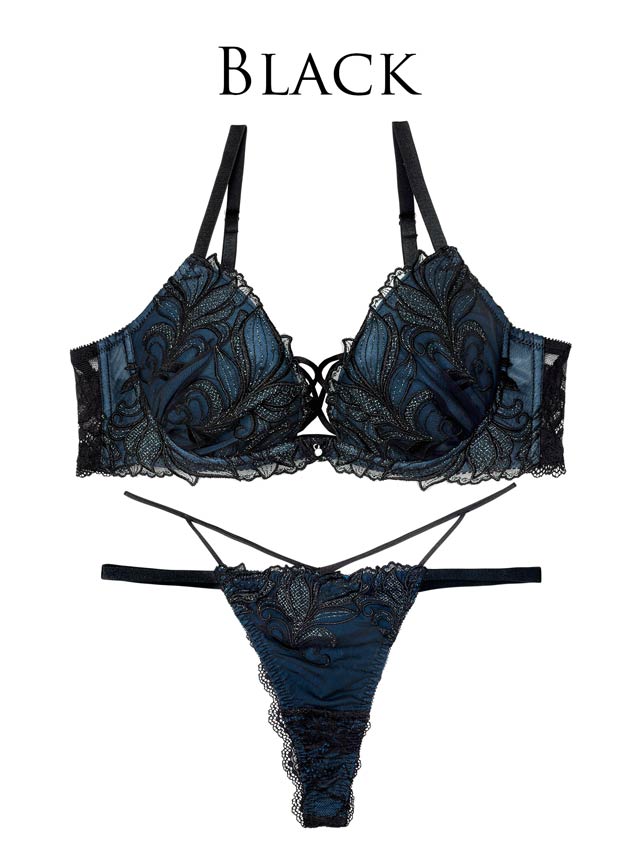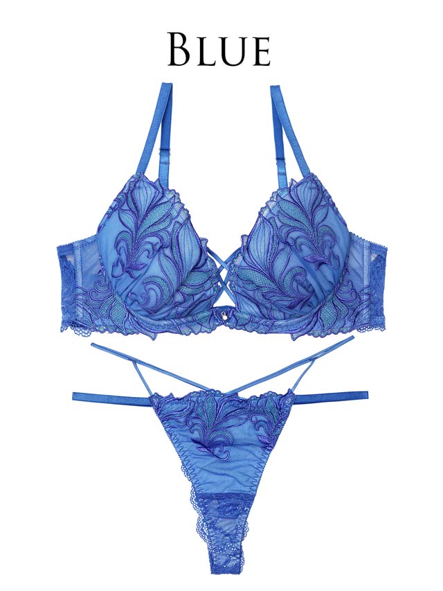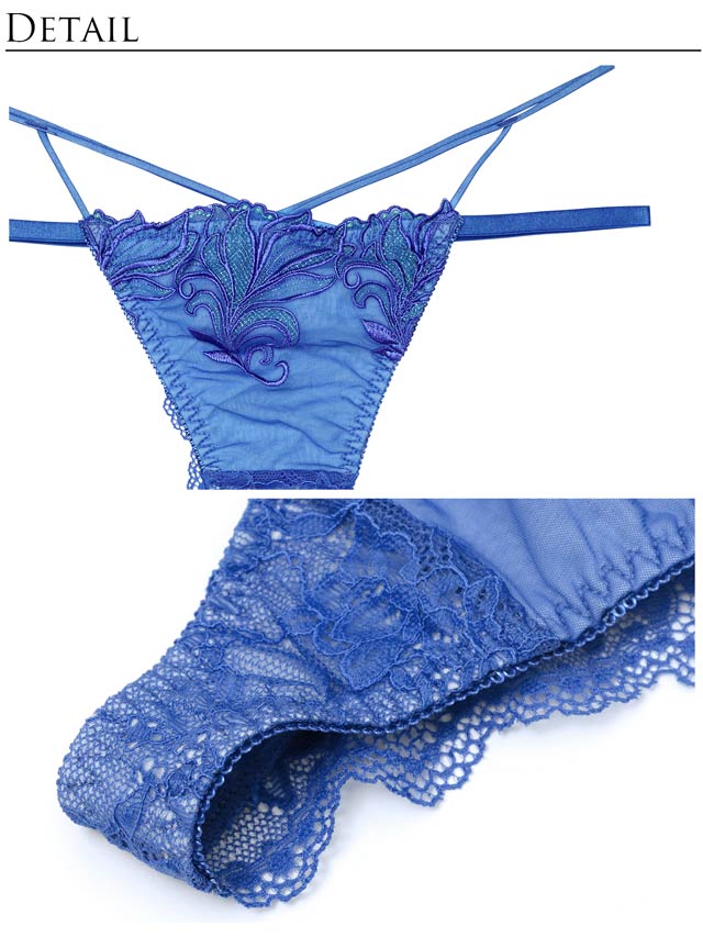 ダスティブルームエンブロイダリー育乳脇高ブラジャー&バック透けフルバックショーツ