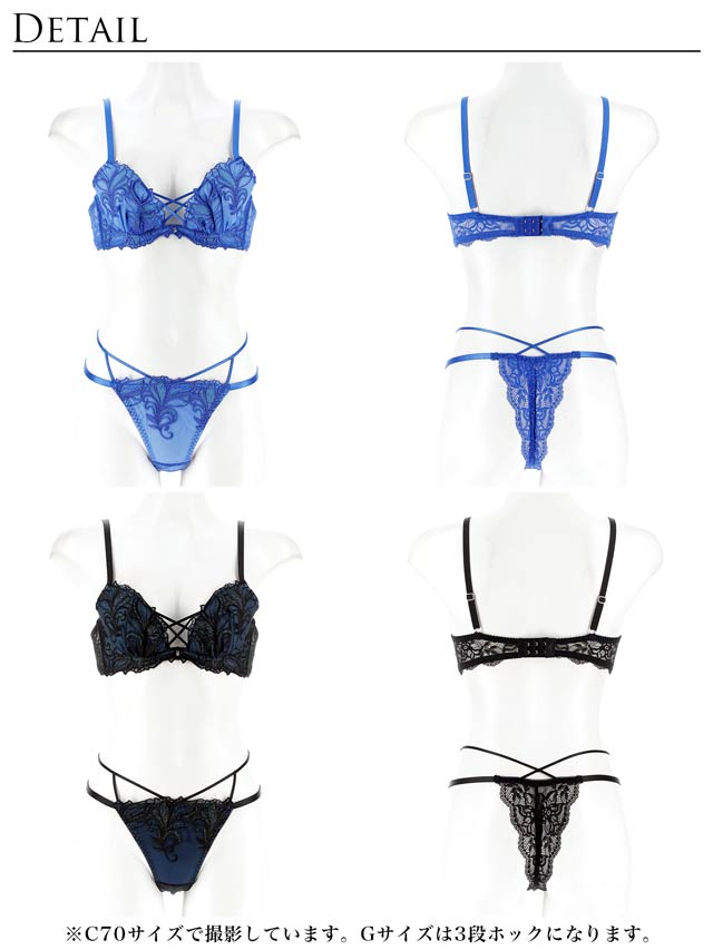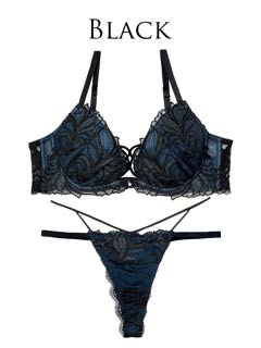 オールレースカットストリング育乳脇高ブラジャー&バック透けフルバックショーツ