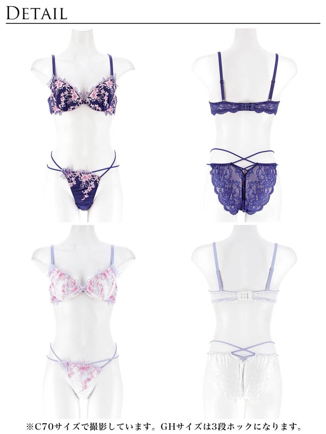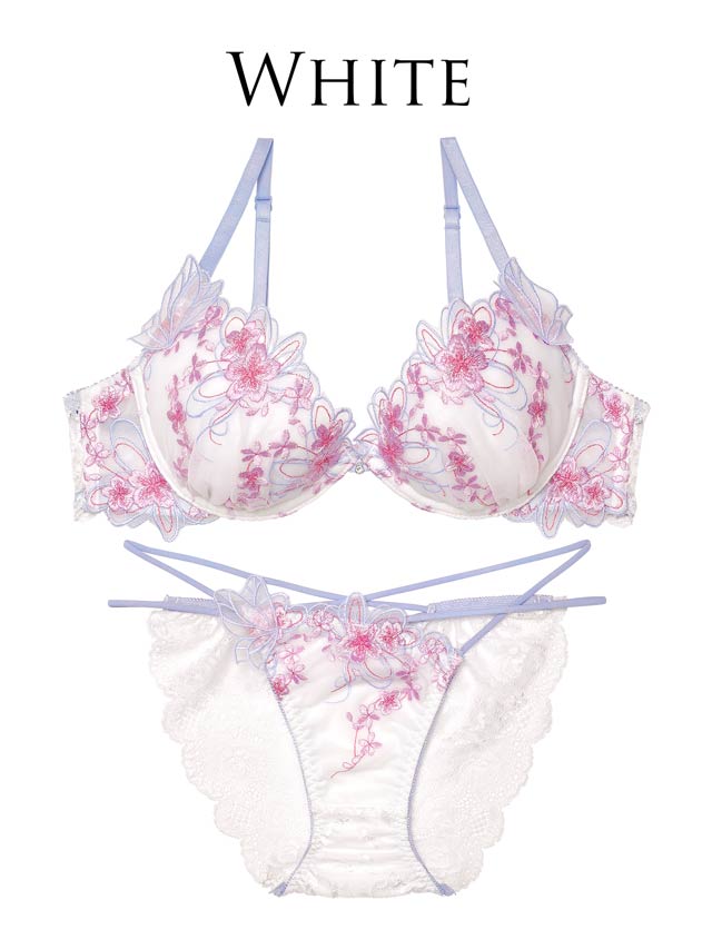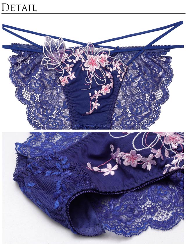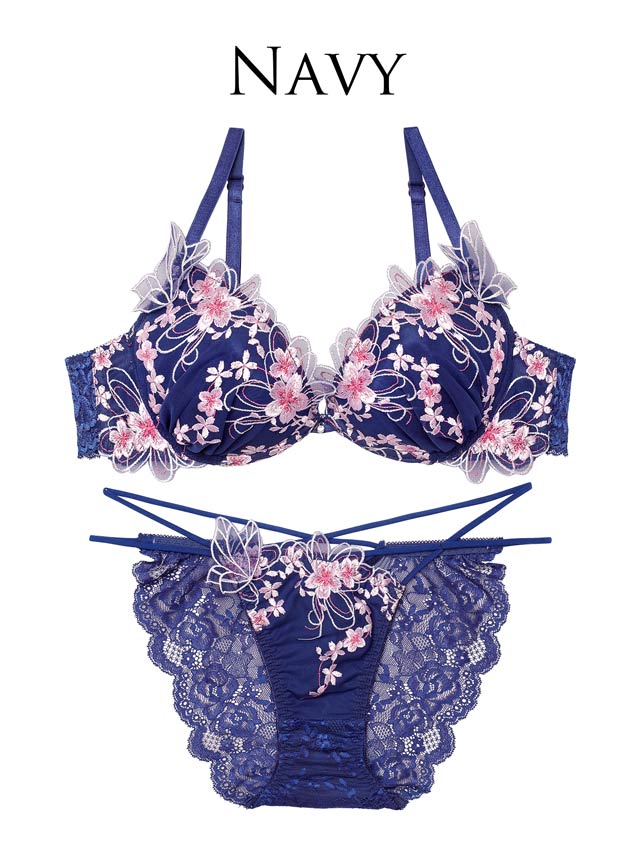 春の訪れを感じさせる満開の桜柄刺繍を贅沢にあしらったランジェリー。身に着けるだけで気分を明るくしてくれる華やかなデザインが魅力的◎ショーツのサイドは華奢なWストリング仕様で腰まわりをセクシーに見せ、女性らしさを引き立ててくれます。