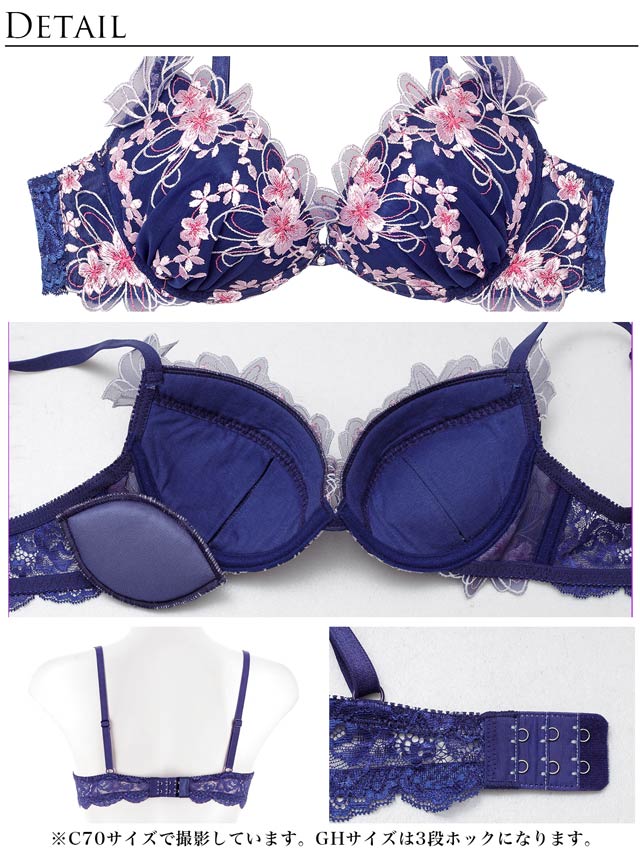 3/4カップ/ワイヤー:有(U字)/ホック:バック2段3列(GHカップ3段3列)