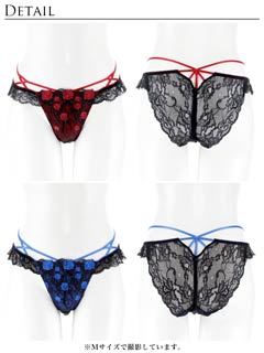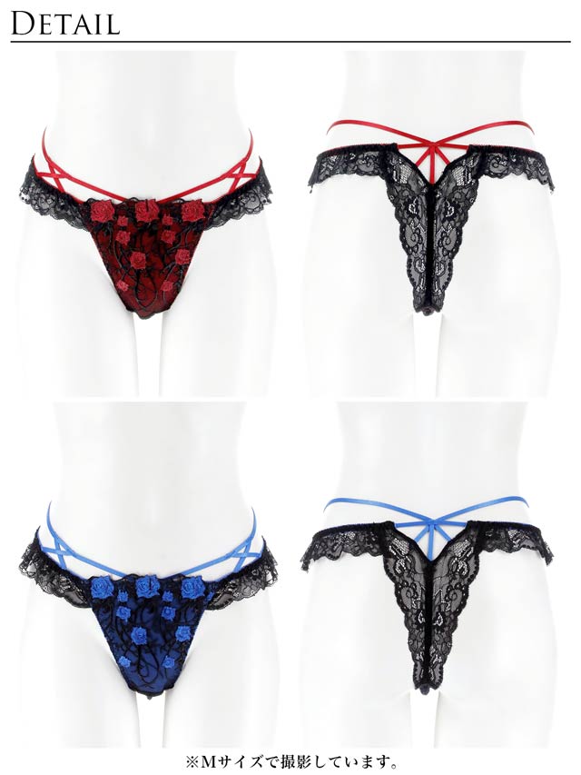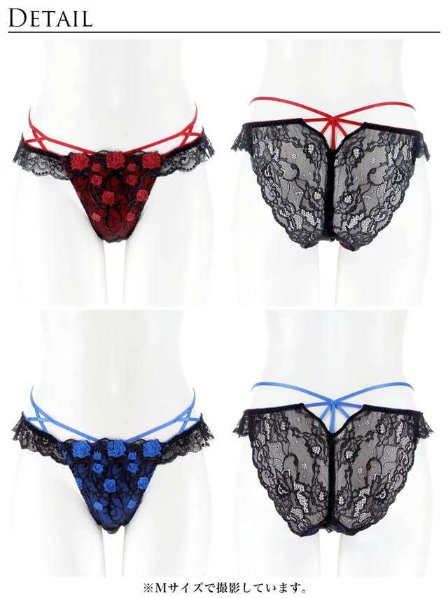 1/23新作!【Reinest】ミッドナイトローズクロスコードバック透け選べるショーツ[おそろいショーツ]