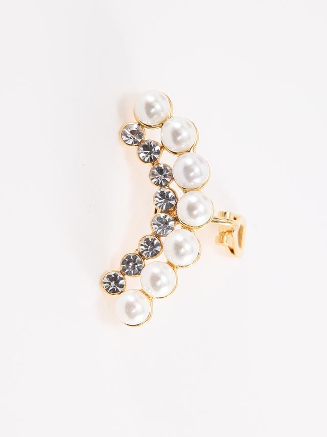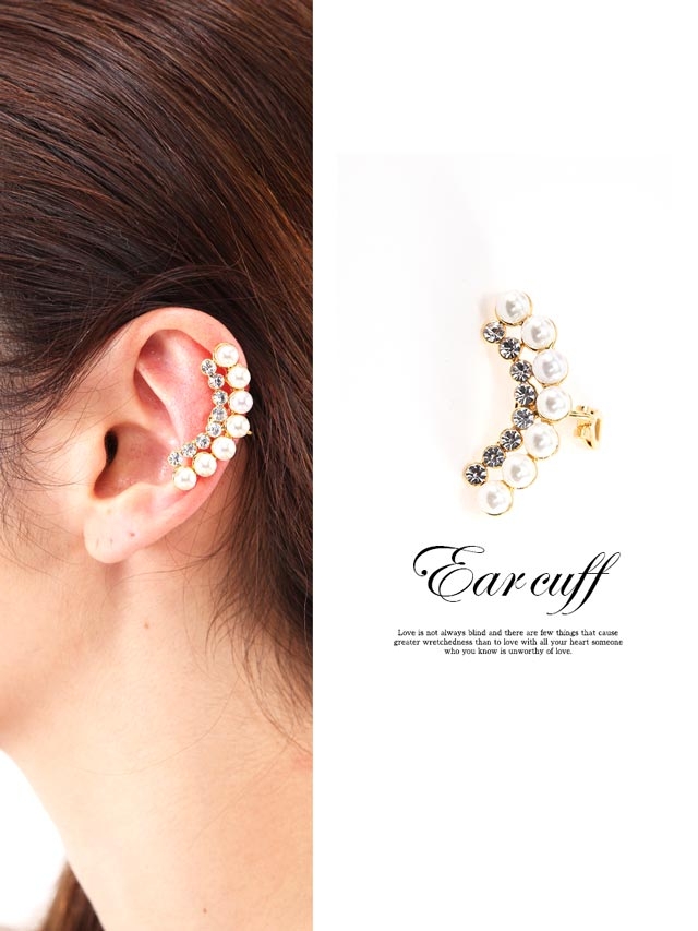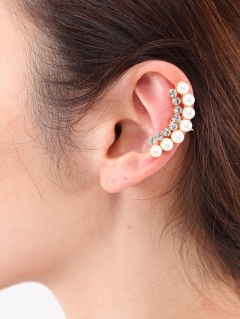 ピアスが開いていなくても大丈夫!耳に引っ掛けるだけでおしゃれが楽しめるイヤーカフ。耳を縁取るパール&ラインストーンで華やかにドレスアップ!