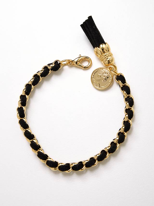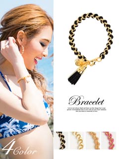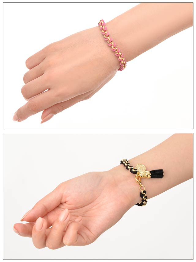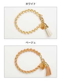 トレンドのフリンジモチーフ付きブレスレット。動かすたびに揺れるフリンジがワンポイントになり、付けるだけでいっきにオシャレな印象に。スエード生地が今の時期にピッタリ!
