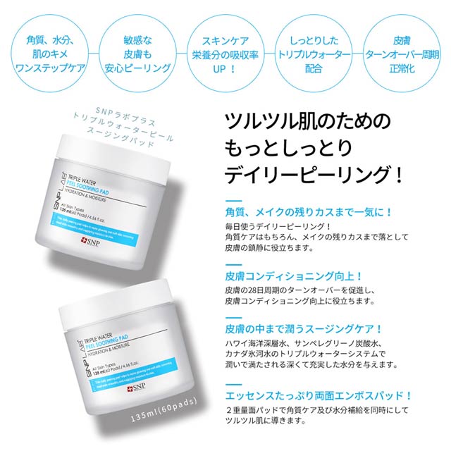 【パッド】SNP エスエヌピー LAB+ TRIPLE WATER PEEL SOOTHING PAD LAB+ トリプルウォーターピールスージングパッド