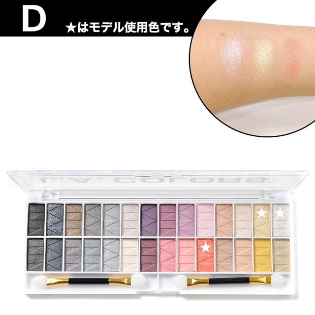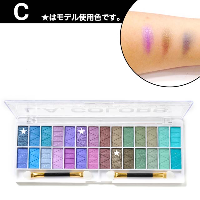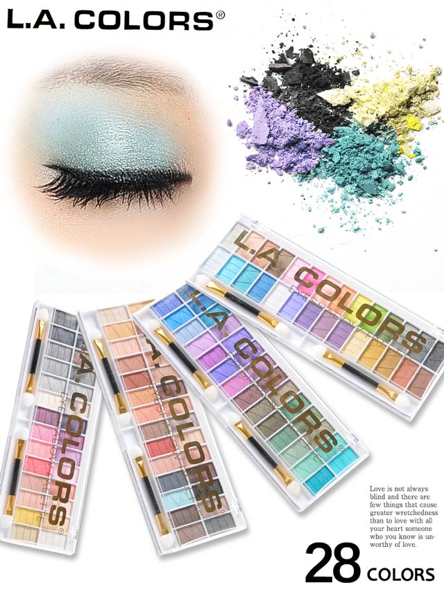 発色の良さと超プチプラ価格でコスメガールズでも、そしてもちろん本国アメリカでも大人気のL.A.カラ―ズの28色セットのアイシャドウ・パレット。肌なじみが良く高発色のアイシャドーなので普段使いにはもちろんイベントやパーティーなどの派手メイクにもばっちり対応できちゃう★マットからラメまで多種多様なカラーが同じパレットに入っているからこれ一つで気分によってアイメイクが変えられるのが嬉しいですね♪このお値段でこの組み合わせは国内ブランドではまずお目にかかれない超プチプラコスメです♪これひとつで貴女のアイメイクは思いのまま♪自分だけのメイクを楽しんじゃお★