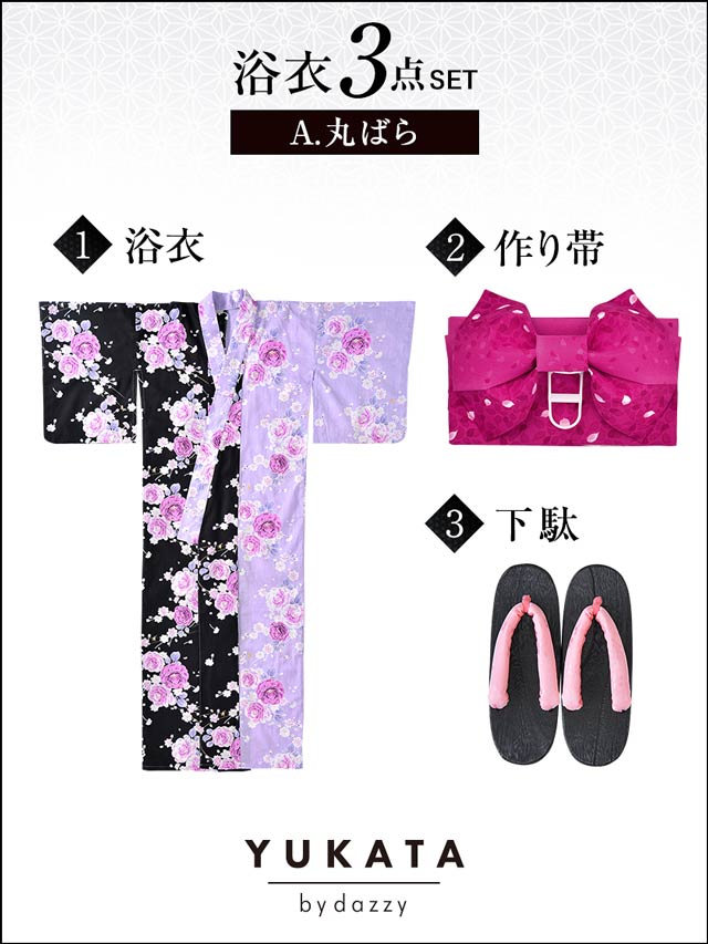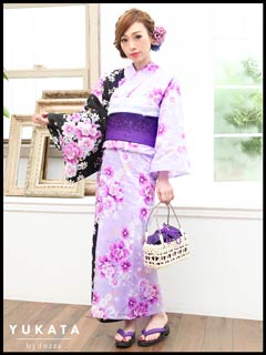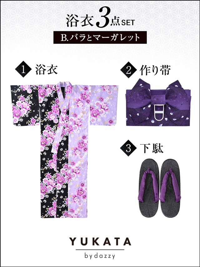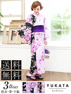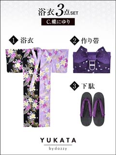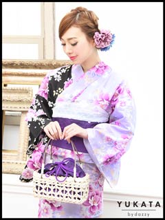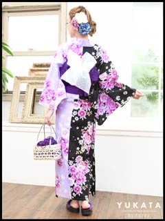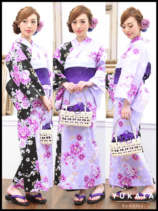 黒×紫バイカラー浴衣3点セット[2016年新作/YUKATA by dazzy]