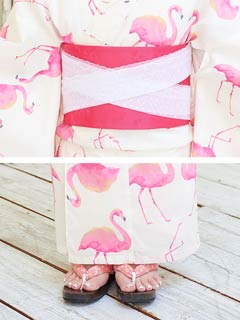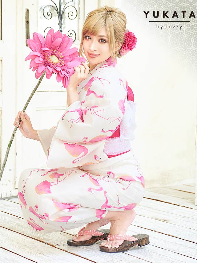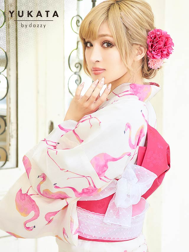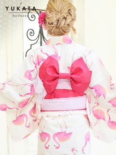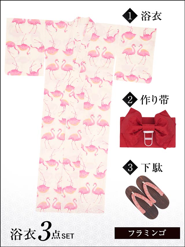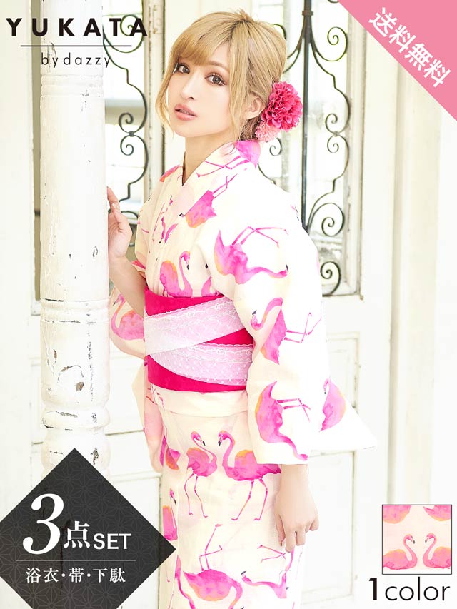 水彩フラミンゴ柄浴衣3点セット[2018年新作/YUKATA by dazzy]