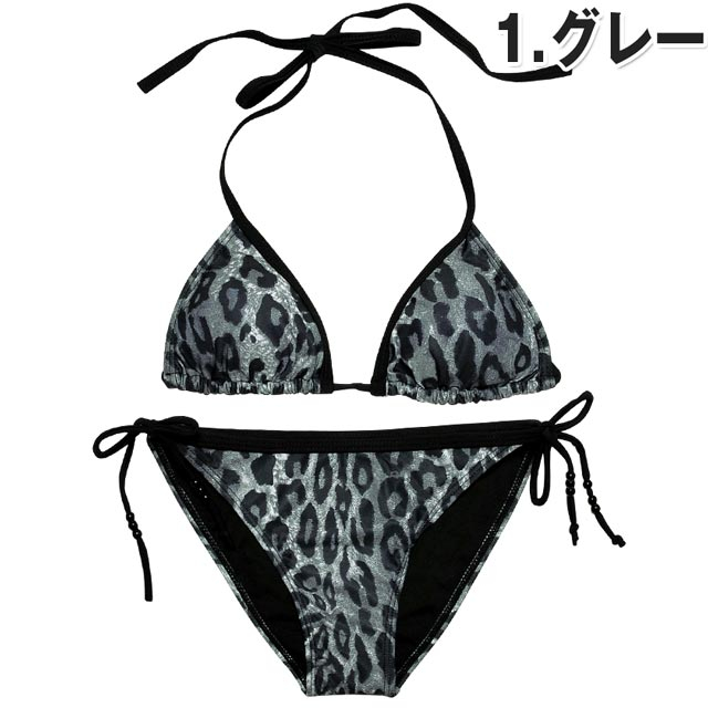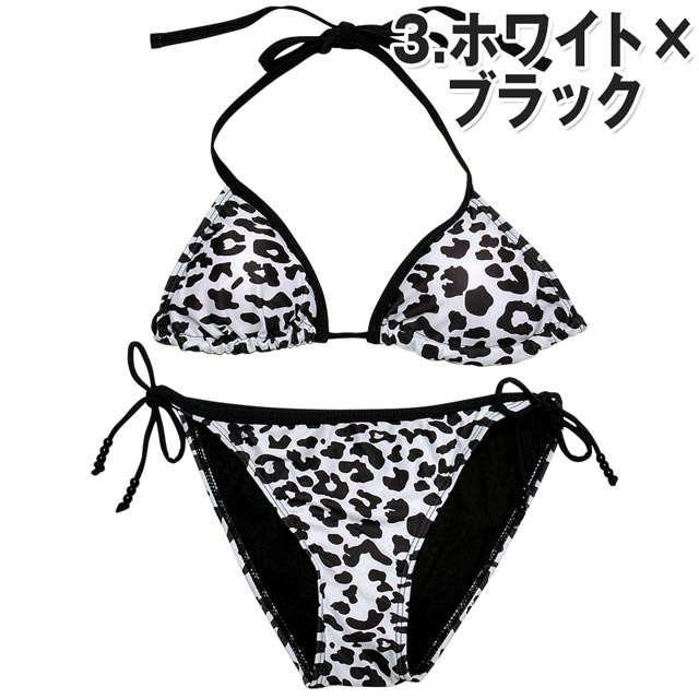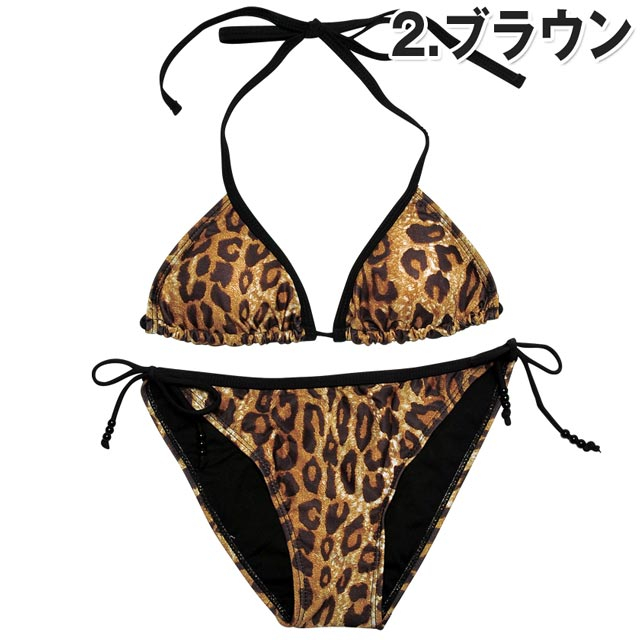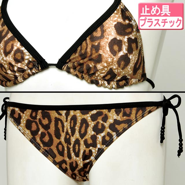 視線集中間違いなしのアニマル柄でビーチの主役をGET!!!驚きの極ミニビキニで超SEXY♂ミニマムなビキニは胸を強調しグッと胸を寄せあげる(〃ノ∇ノ)お揃いのショーツサイドのヒモにはブラックビーズが装飾♪ホルターヒモ部分にも付いています↑↑今年は攻めのレオパでメンズをクラクラさせちゃおう(人*´∀`)