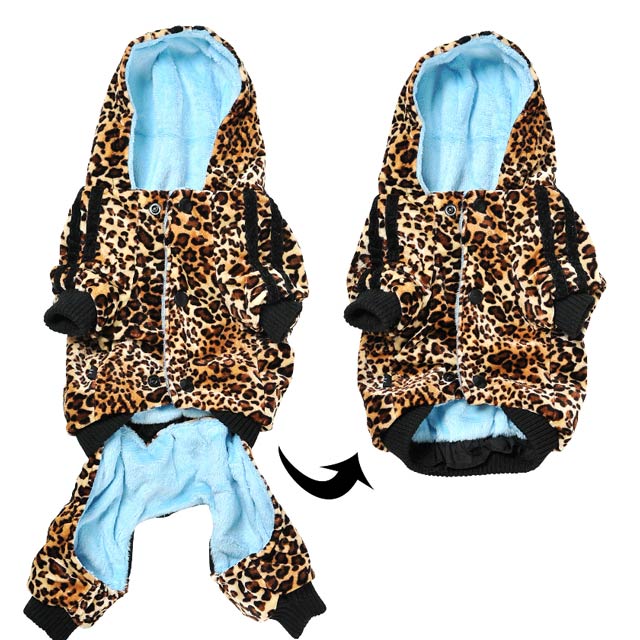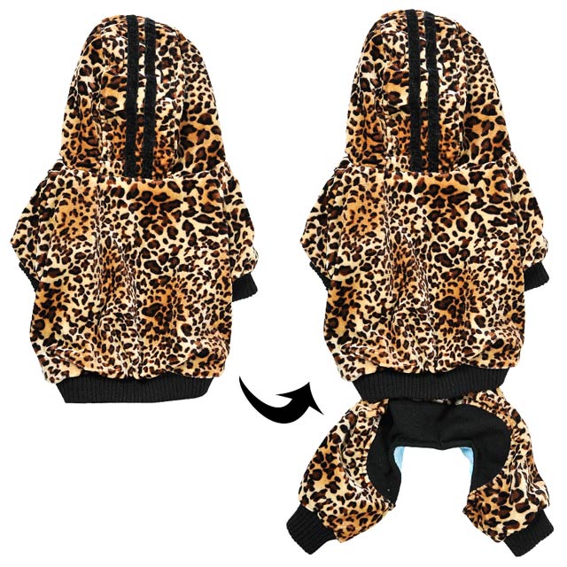 [犬服]豹柄フード付きオールインワン[S/M/L]
