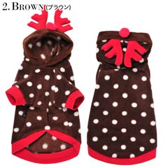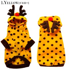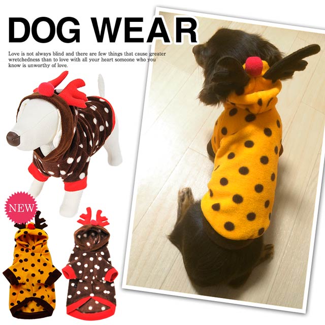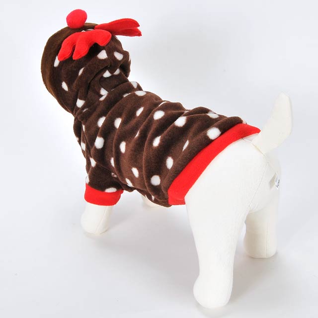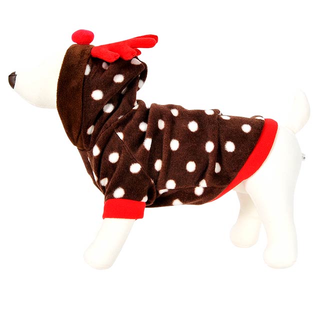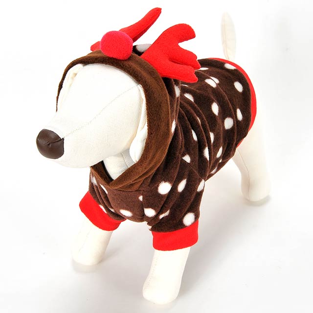 [犬服]ドット柄トナカイフリースパーカー[S/M]